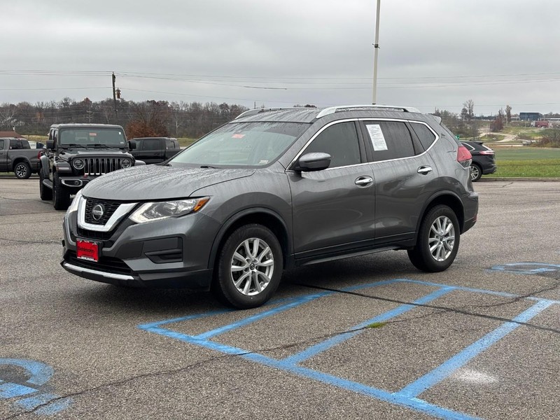 CALL (636) 775-2900 FOR MORE INFORMATION, LOCAL TRADE, BLUETOOTH, REAR BACK UP CAMERA, REAR PARKING SENSORS, CRUISE CONTROL, AWD / 4 WHEEL DRIVE, POWER REAR LIFTGATE, REMOTE VEHICLE START, ALLOY WHEELS, SIDE BLIND ZONE ALERT, HEATED FRONT SEATS, Rogue SV, 4D Sport Utility, 2.5L I4 DOHC 16V, CVT with Xtronic, AWD, Gun Metallic, Charcoal Cloth. Rogue SV, 4D Sport Utility, 2.5L I4 DOHC 16V, CVT with Xtronic, AWD, Gun Metallic, Charcoal Cloth, 17" Aluminum Alloy Wheels, 4-Wheel Disc Brakes, 6 Speakers, 6.386 Axle Ratio, ABS brakes, Air Conditioning, Alloy wheels, AM/FM radio: SiriusXM, Anti-whiplash front head restraints, Auto High-beam Headlights, Automatic temperature control, Blind Spot Warning, Brake assist, Bumpers: body-color, CD player, Cloth Seat Trim, Delay-off headlights, Driver door bin, Driver vanity mirror, Dual front impact airbags, Dual front side impact airbags, Electronic Stability Control, First Aid Kit, Floor Mats & 2-PC Cargo Area Protector, Four wheel independent suspension, Front anti-roll bar, Front Bucket Seats, Front Center Armrest w/Storage, Front dual zone A/C, Front reading lights, Fully automatic headlights, Heated door mirrors, Heated Front Bucket Seats, Heated front seats, Illuminated entry, Leather Shift Knob, Low tire pressure warning, NissanConnect featuring Apple CarPlay and Android Auto, Occupant sensing airbag, Outside temperature display, Overhead airbag, Overhead console, Panic alarm, Passenger door bin, Passenger vanity mirror, Power door mirrors, Power driver seat, Power Liftgate, Power steering, Power windows, Radio data system, Radio: AM/FM/CD/AUX, Radio: AM/FM/CD/AUX NissanConnect w/Navigation, Rear anti-roll bar, Rear Parking Sensors, Rear seat center armrest, Rear window defroster, Rear window wiper, Remote keyless entry, Roof rack: rails only, Security system, Speed control, Speed-sensing steering, Split folding rear seat, Spoiler, Steering wheel mounted audio controls, Tachometer, Telescoping steering wheel, Tilt steering wheel, Traction control, Trip computer, Turn signal indicator mirrors, and Variably intermittent wipers. Odometer is 6738 miles below market average! Third Party sources are involved in the posting of incentives and sale prices. See salesperson for details and verification.